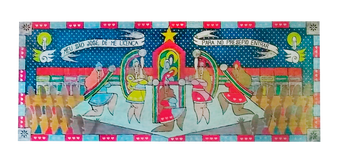 A temática religiosa ficou evidente. Os textos bíblicos e o simbolismo das imagens sacras e religiosas fazem parte do universo que gosta muito de pesquisar e pintar.
